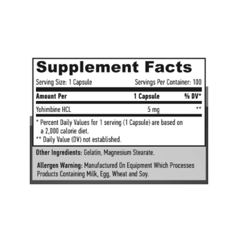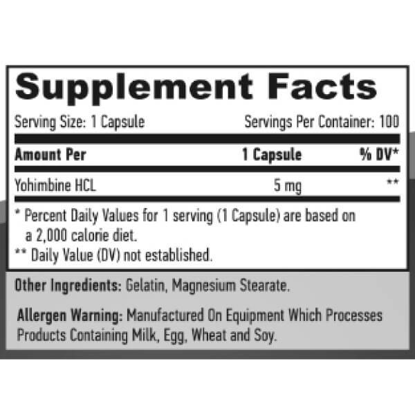 В одной желатиновой капсуле биоактивной добавки Yohimbine HCL от Haya Labs содержится:
