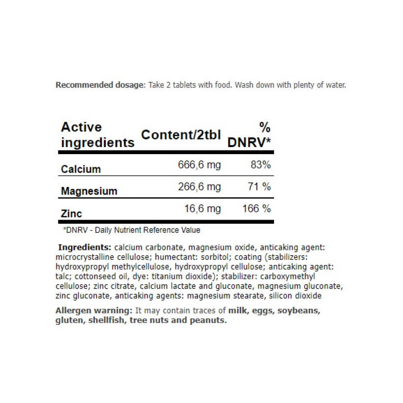 В порции CA+MG+ZN от Amix из 2 таблеток содержится: