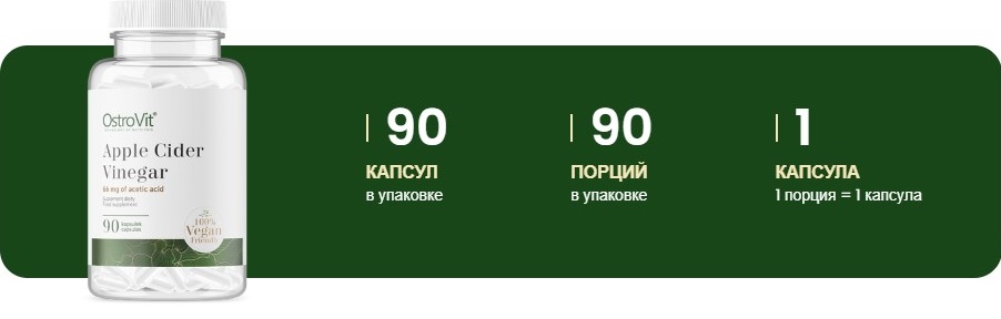 Apple Cider Vinegar VEGE OstroVit - это больше, чем просто диетическое дополнение. Это здоровье в удобной капсуле, предназначенное для тех, кто желает дополнить свой рацион полезными ингредиентами природного происхождения. Отправляйтесь на путь здоровья вместе с OstroVit и Apple Cider Vinegar VEGE, где каждая капсула - это шаг к более здоровой жизни.