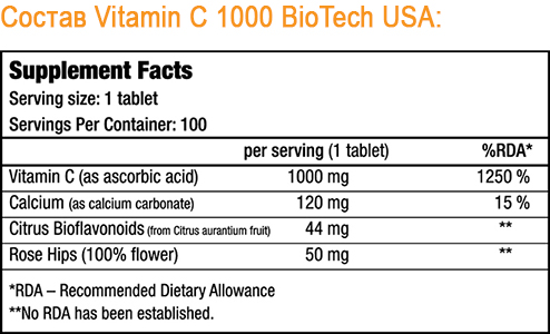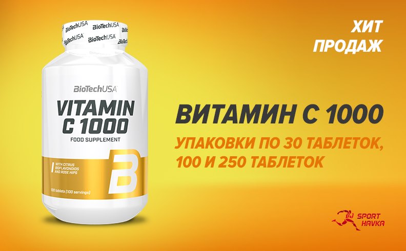 VitaminC 1000 от BioTechUSA в 1 таблетке содержит суточную дозу витамина С, поэтому станет отличным дополнением к рациону спортсменов.