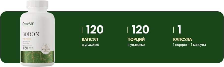 Boron Ostrovit - это высококачественная пищевая добавка, разработанная для поддержания здоровья костей, суставов и общего организма. Производится компанией Ostrovit, известной своими инновационными продуктами и стремлением к качеству.