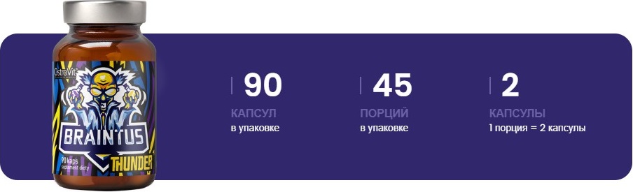 OstroVit Braintus Thunder призначений для підвищення продуктивності та підтримки здоров'я мозку в будь-яких ситуаціях.