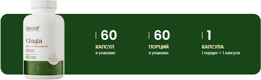 Chaga Vege OstroVit : Сохранение здоровья и восстановление силы природой.Чага, или черный гриб, является одним из самых ценных даров природы для сохранения и укрепления здоровья. Chaga Vege OstroVit - это продукт, который использует всю силу этого уникального гриба, чтобы помочь вам достичь идеального состояния здоровья. Каждая капсула содержит в себе отобранные ингредиенты, которые способствуют общему укреплению организма, поддержке иммунной системы и борьбе со стрессом. Давайте рассмотрим подробнее, как Chaga Vege OstroVit может стать вашим лучшим союзником в борьбе за здоровье и благополучие.