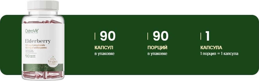 Elderberry VEGE OstroVit, содержащий экстракт бузины, предлагает удобный способ включить эти ценные биологически активные вещества в ваш ежедневный рацион. Капсулы обеспечивают удобство и простоту приема, что делает их идеальным выбором для тех, кто стремится к поддержанию общего здоровья и благополучия.