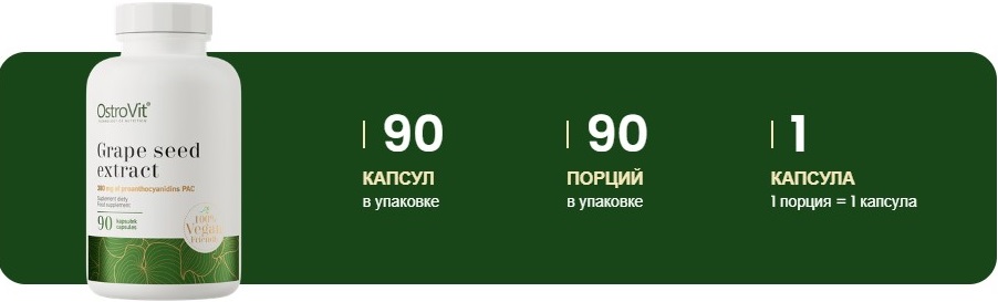 Grape Seed VEGE OstroVit - натуральное дополнение питания, разработанное для поддержки общего здоровья и благополучия организма. Этот продукт содержит высококачественные экстракты из семян винограда, которые известны своими полезными свойствами и богаты антиоксидантами.