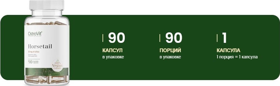 Веганский состав: Horsetail Vegan OstroVit изготовлен из веганских ингредиентов, что делает его подходящим для всех, кто придерживается веганского образа жизни или предпочитает растительные добавки.