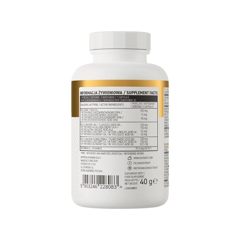 Комплекс жирных кислот Омега Ostrovit Omega 3-6-9 – это высококачественная биологическая добавка, которая станет отличным источником незаменимых полиненасыщенных жирных кислот.