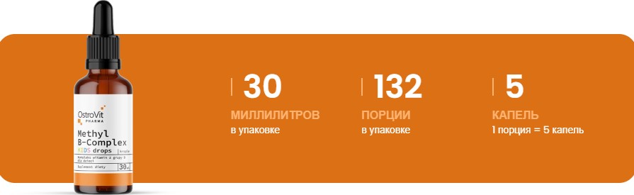Каждая капля Pharma Methyl B-Complex KIDS OstroVit содержит оптимальное сочетание витаминов группы B: