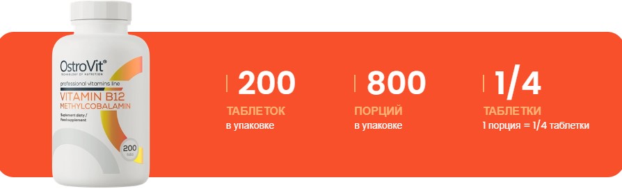 200 таблеток в банке: Удобная упаковка содержит 200 таблеток, что обеспечивает вас длительным запасом витамина B12 и позволяет экономить время и средства на постоянных покупках.