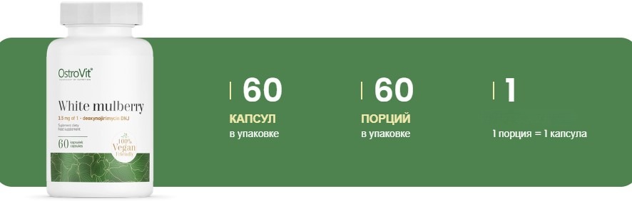 White Mulberry VEGE OstroVit является высококачественным пищевым дополнением, разработанным для поддержания общего здоровья и благополучия. Этот продукт основывается на экстракте белой шелковицы, которая известна своими полезными свойствами и использовалась в традиционной медицине на протяжении многих веков. Изготовленный с использованием передовых технологий и контролируемых процессов производства, White Mulberry VEGE OstroVit обеспечивает надежную поддержку для вашего здоровья и благополучия.