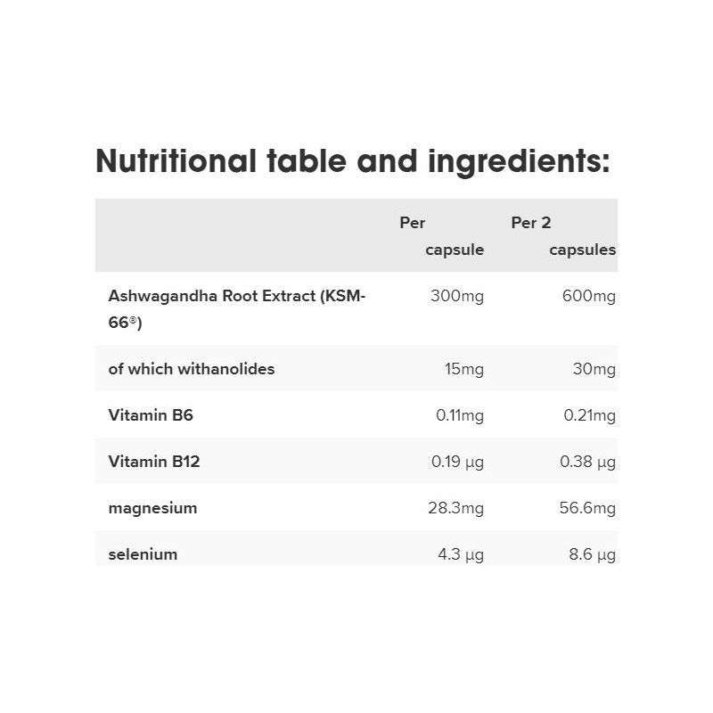 | Ashwagandha Root Extract (KSM-66®) | 300mg | 600mg |
