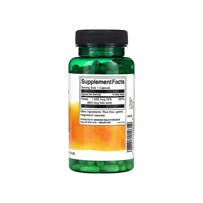 Swanson предлагает высококачественную фолиевую кислоту в дозировке 800 мкг на одну капсулу, что позволяет обеспечить суточную потребность организма в этом важном нутриенте. Folic Acid от Swanson не содержит искусственных красителей, консервантов и безопасен для ежедневного употребления. Капсулы имеют удобную форму, легко усваиваются и подходят для длительного использования. Благодаря концентрированной формуле, Swanson Premium обеспечивает максимальную эффективность и поддержку вашего здоровья.