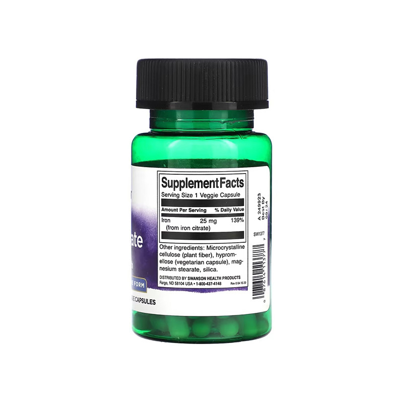 Iron Citrate 25 мг от Swanson – это эффективная добавка для поддержания уровня железа в организме. Благодаря форме цитрата железа, продукт обеспечивает высокую биодоступность и лёгкое усвоение без нежелательных побочных эффектов. Продукт подходит для людей, страдающих от дефицита железа, а также для веганов, спортсменов и женщин репродуктивного возраста.