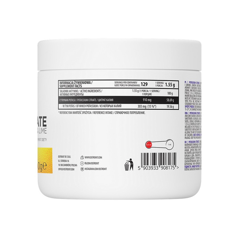 Potassium Citrate OstroVit – идеальный выбор для тех, кто стремится обеспечить своему организму необходимую поддержку во время активного образа жизни, диеты или физических нагрузок.
