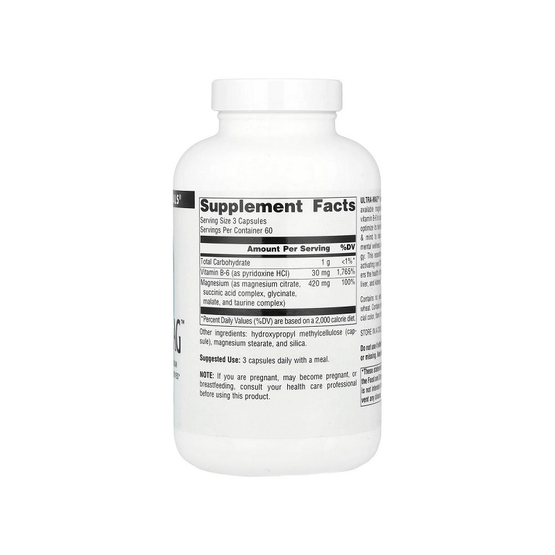 ULTRA-MAG Source Naturals – это оптимальное решение для людей, заботящихся о работе нервов, сердца и мышц и стремящихся поддерживать стабильный энергетический уровень.