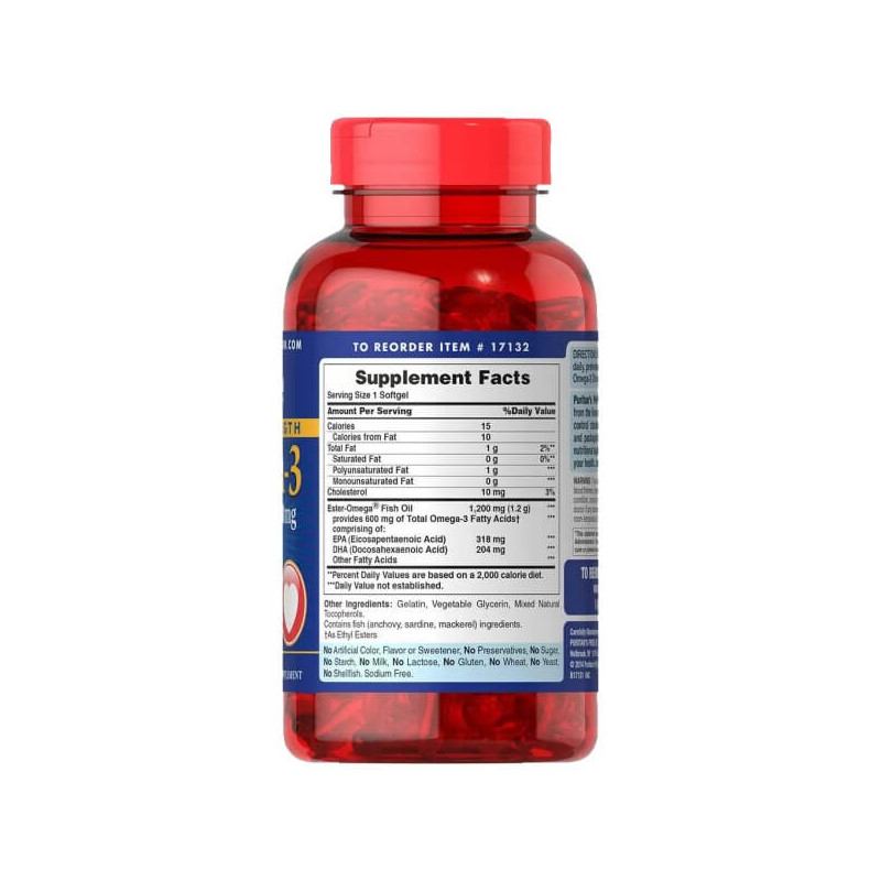 Omega-3 Fish Oil от компании Puritan's Pride – биодобавка, основу которой составляет жир морской рыбы с высокой концентрацией полиненасыщенных жирных кислот Омега 3 – эйкозапентаеновой и докозагексаеновой. Эти кислоты не вырабатываются организмом, поэтому человеку необходимо получать Омега 3 извне. Можно делать это, корректируя пищевой рацион. Однако такой подход чреват дефицитом других, не менее значимых нутриентов.