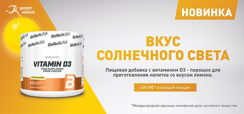 Каждая порция добавки (5 г) содержит 10 мкг витамина D3 и станет отличным дополнением рациона спортсменов.