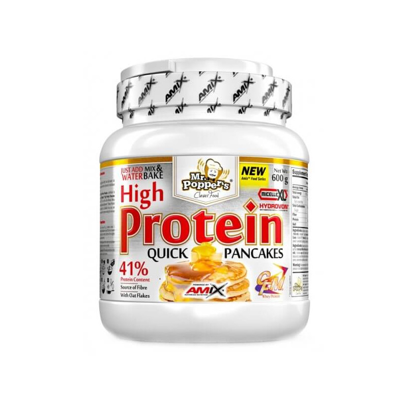 High Protein Pancakes от популярного европейского бренда спортивного питания Amix – порошковая смесь с приятным и насыщенным шоколадно-кокосовым вкусом. Ее используют для быстрого приготовления вкусных и полезных блинов, оладий, панкейков. Продукт отличается от обычного блинного теста высоким содержанием качественных белков. Они представлены в виде микса изолята и концентрата сывороточных протеинов, прошедших микрофильтрацию.