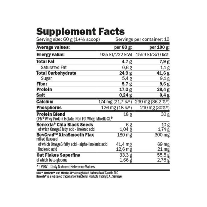 В порции продукта Protein Chia Mash от Mr.Popper's массой в 60 г содержится: