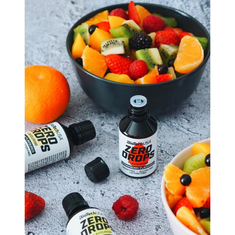 Zero Drops может быть использован для ароматизации воды, соков, коктейлей, йогуртов, кисломолочных продуктов и многих других блюд. Вам необязательно добавлять сахар или сиропы, поскольку несколько капель Zero Drops обеспечат вам нужный уровень сладости и аромата. Это делает продукт очень экономичным в использовании, ведь вам понадобится лишь небольшое количество, чтобы наслаждаться насыщенным вкусом.