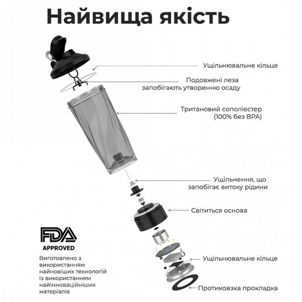 Шейкер електричний VOLTRX Gallium (600 мл) – це надійний і зручний аксесуар для кожного спортсмена, який цінує швидкість, якість і комфорт.