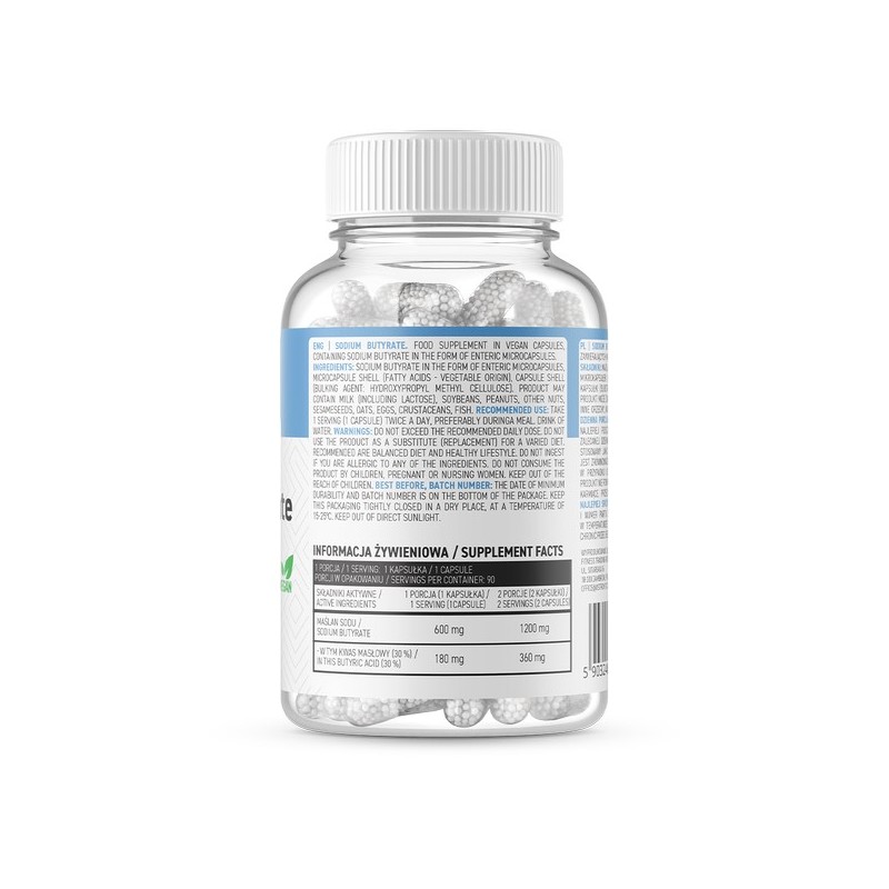 Кожна порція препарату (1 капсула) містить 0,6 g бутирата натрію, в тому числі - 0,18 g масляной кислоти.