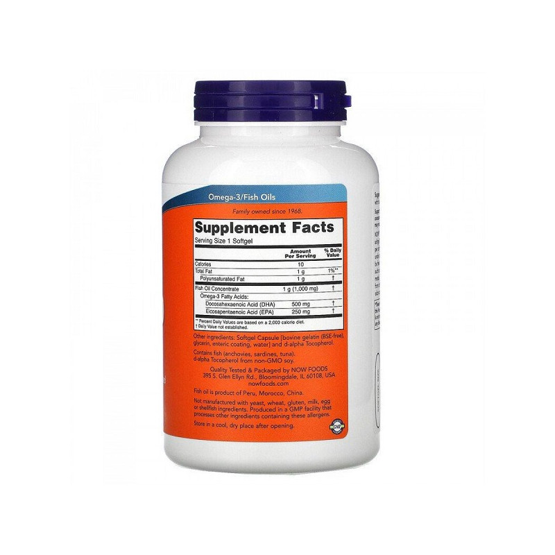 Препарат DHA-500 від американського бренду спортивного харчування Now Foods - це натуральний риб'ячий жир. Він зовсім не схожий на в'язку рідину з неприємним присмаком, яку люди середнього і старшого віку пам'ятають з дитинства. Сучасний оновлений риб'ячий жир - це невеликі гелеві капсули, які не мають смаку і легко проковтують. Вони наповнені вмістом високого ступеня очищення від шкідливих компонентів - ртуті, важких металів, пластику і всього іншого, що може міститися в морській рибі.