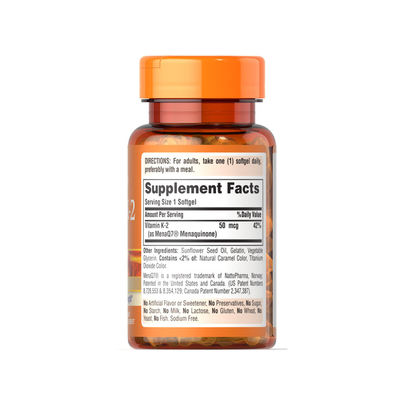 Vitamin K-2 (MenaQ7) від компанії зі США Puritan's Pride є біоактивною добавкою, в якій натуральний жиророзчинний вітамін К2 (менахінон) представлений у довголанцюговій формі МК-7.