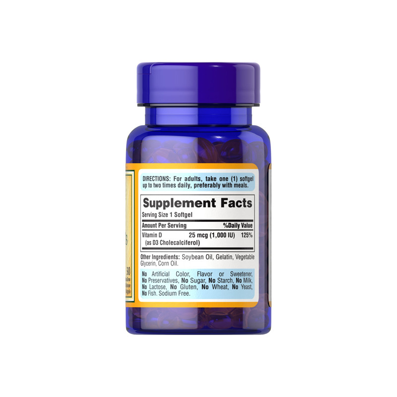 Регулярний прийом добавки Vitamin D3 1000 заповнює дефіцит цього вітаміну, це сприяє зміцненню кісток, регуляції мінерального обміну і перешкоджає остеомаляції. Речовина також регулює вироблення інсуліну, відповідає за здоров'я зубів, позитивно впливає на клітини кісткового мозку.