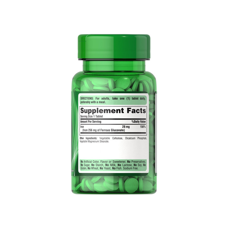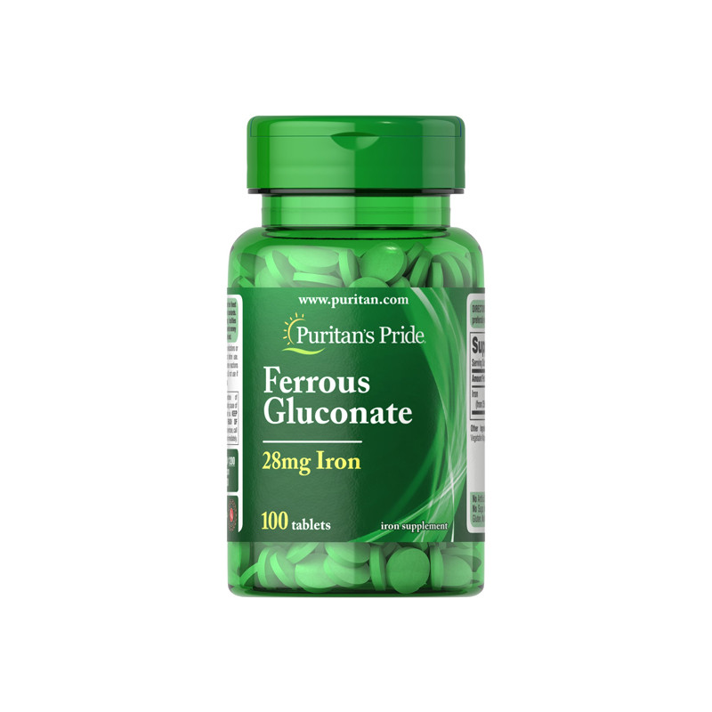 Характеристики    Iron Ferrous Gluconate 28 мг Puritan's Pride (100 таблеток)