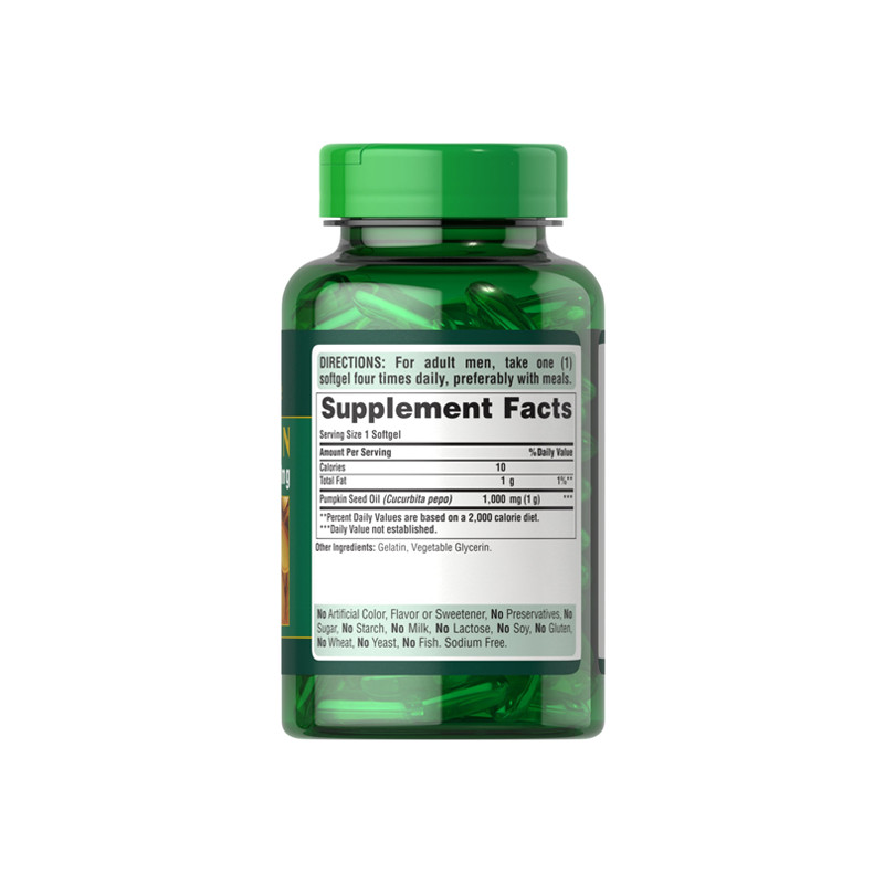 У кожній капсулі дієтичної біодобавки Pumpkin Seed Oil від бренду Puritans Pride міститься:
