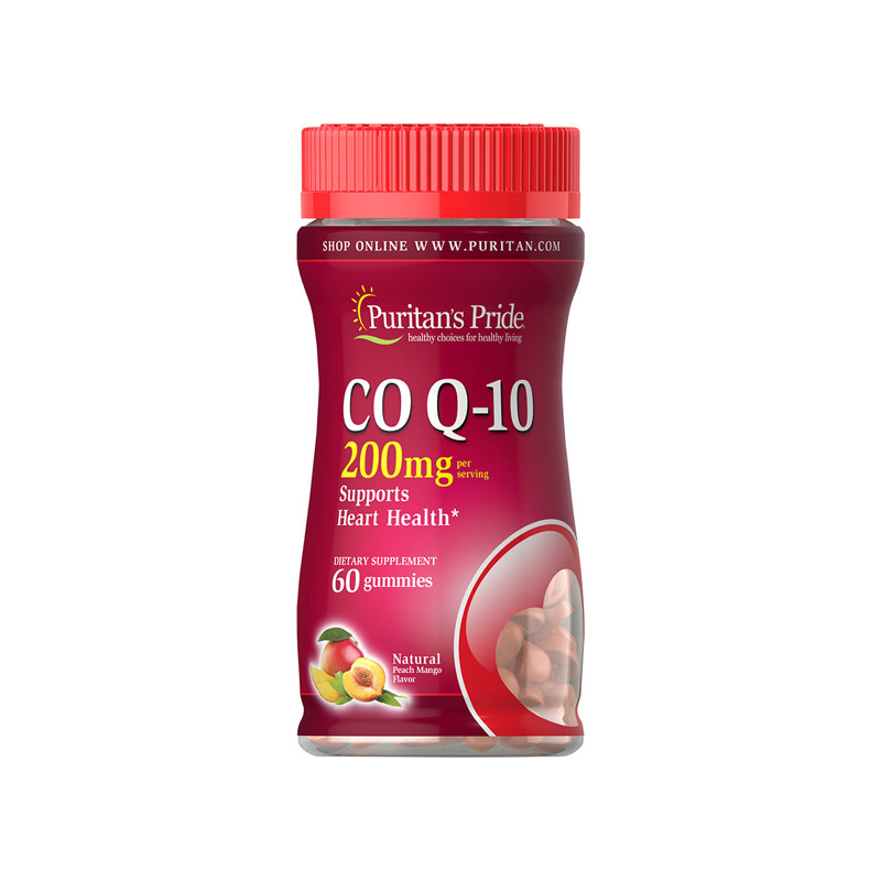 Харчова добавка Co Q-10 Peach Mango від виробника зі США Puritan's Pride – природний коензим зі смаком персика та манго у вигляді жувальних цукерок.