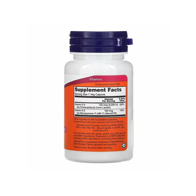 До складу кожної капсули Mega D-3 & MK-7 Now Foods входить: