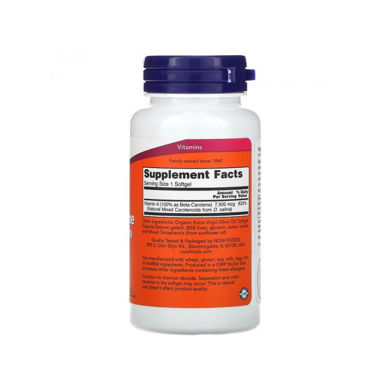 Natural Beta-Carotene – корисна харчова добавка з пріордним бета-каротином від відомого виробника із США Now Foods.
