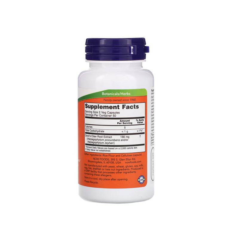 Devil's Claw від американського бренду з виробництва біоактивних продуктів Now Foods – натуральна харчова добавка на основі африканської рослини гарпагофітум, яку також називають кігтем диявола або чортовим кігтем.