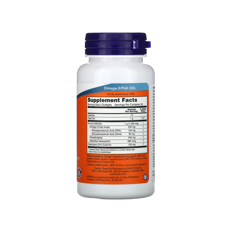 У порції препарату Krill & CoQ10 Now Foods із двох м'яких гелевих капсул міститься: