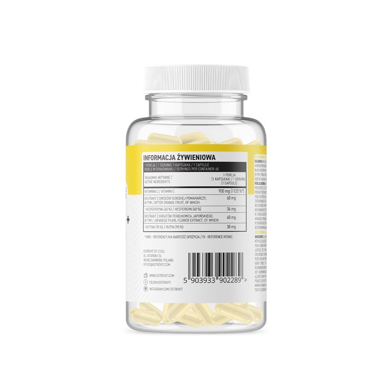 Vitamin C+Hesperidin+Rutin від польської компанії OstroVit є збалансованим натуральним комплексом, в якому основний компонент – вітамін С – доповнений природною речовиною гесперидином, що отримується з плодів апельсина, а також рутином з японської софори. Завдяки такому складу продукт працює в організмі відразу в кількох напрямках, надаючи потужний оздоровчий ефект.
