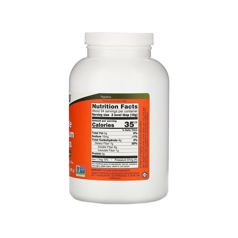 Whole Psyllium Husks від виробника із США Now Foods – натуральна біоактивна добавка з лушпиння насіння подорожника, подрібненого до стану порошку. Цей природний продукт за своєю структурою є розчинною клітковиною. На відміну від нерозчинних харчових волокон він здатний взаємодіяти з кишковими бактеріями, приносячи організму набагато більше користі.