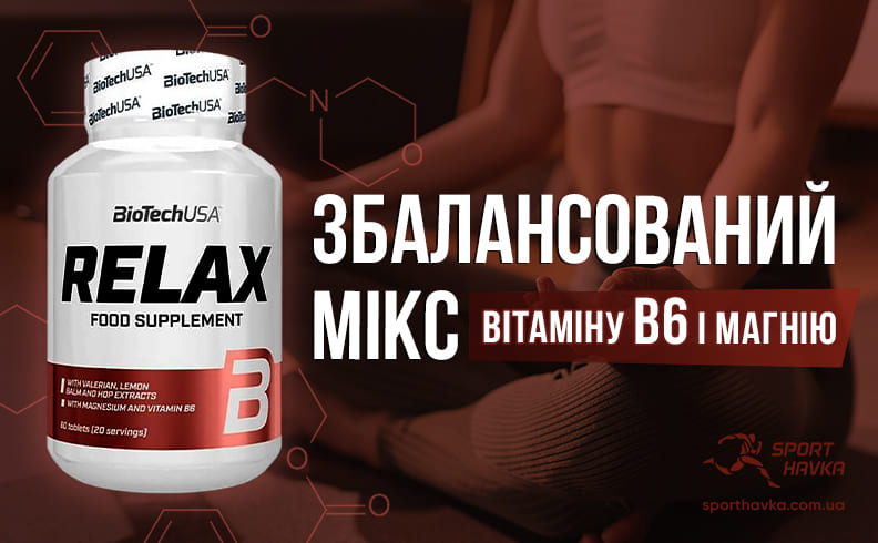 Біоактивна добавка Relax від компанії BioTech - це збалансований мікс вітаміну В6 і магнію, представленого в адаптованій формі бісгліцинату, що легко засвоюється. Завдяки органічному походженню компонентів та відсутності синтетичних добавок комплекс приносить максимум користі нервовій системі, не супроводжуючись неприємними побічними ефектами.
