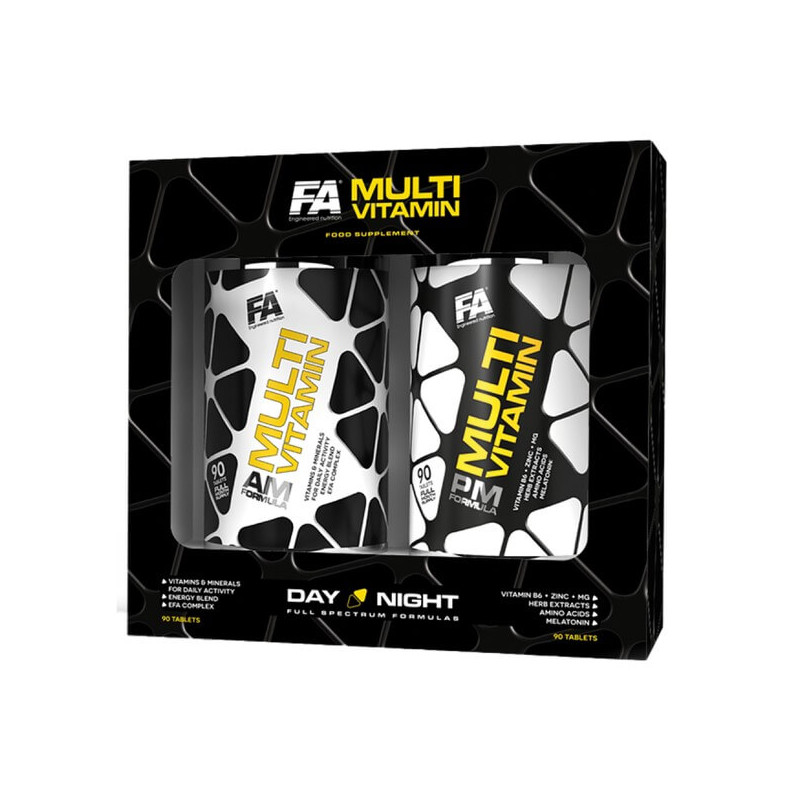 Multivitamin AM PM Formula від Fitness Authority – потужний збалансований комплекс вітамінів та мінералів, який підтримує роботу організму у будь-який час доби. Ця біоактивна добавка представлена двома видами таблеток – для підтримки протягом дня та для нічного відновлення. Кожна з матриць має унікальні властивості та можливості позитивного впливу на організм.