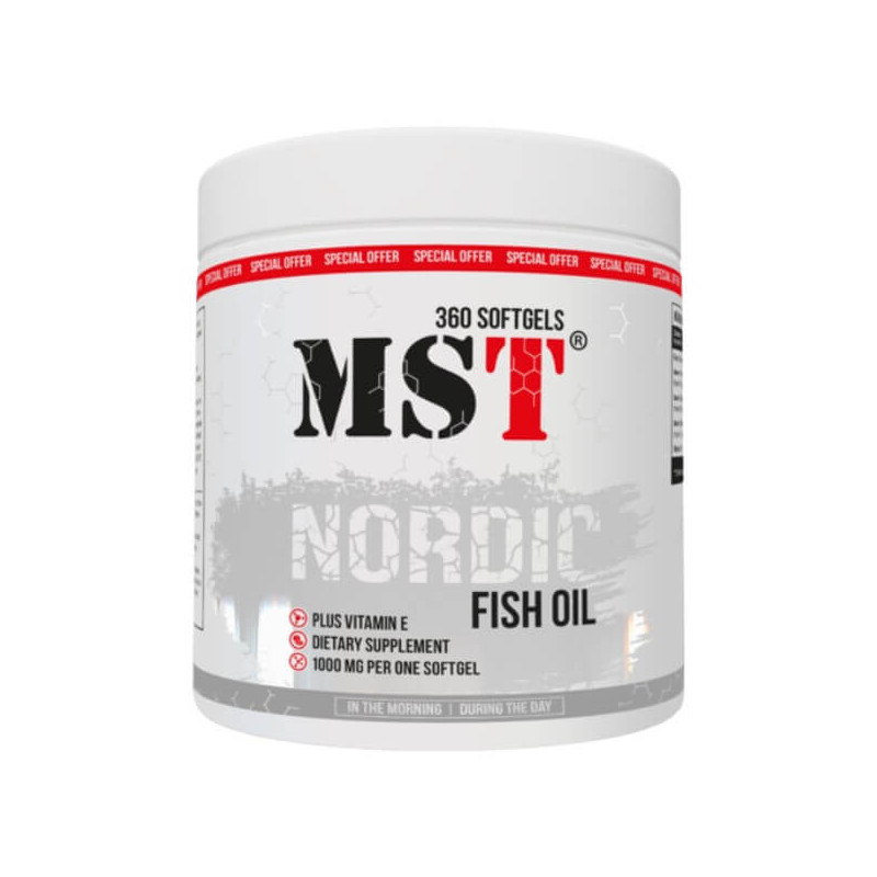 Nordic Fish Oil від виробника MST (Німеччина) - високоочищений риб'ячий жир, доповнений вітаміном Е, в м'яких капсулах з гелевою оболонкою, що має нейтральний смак і розчиняється безпосередньо в кишечнику.