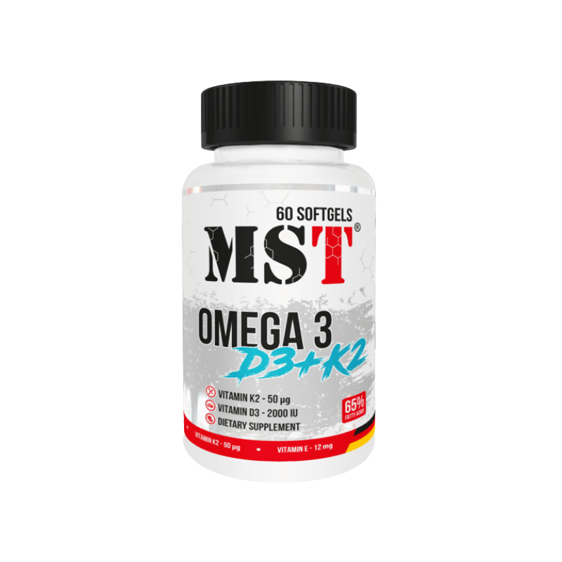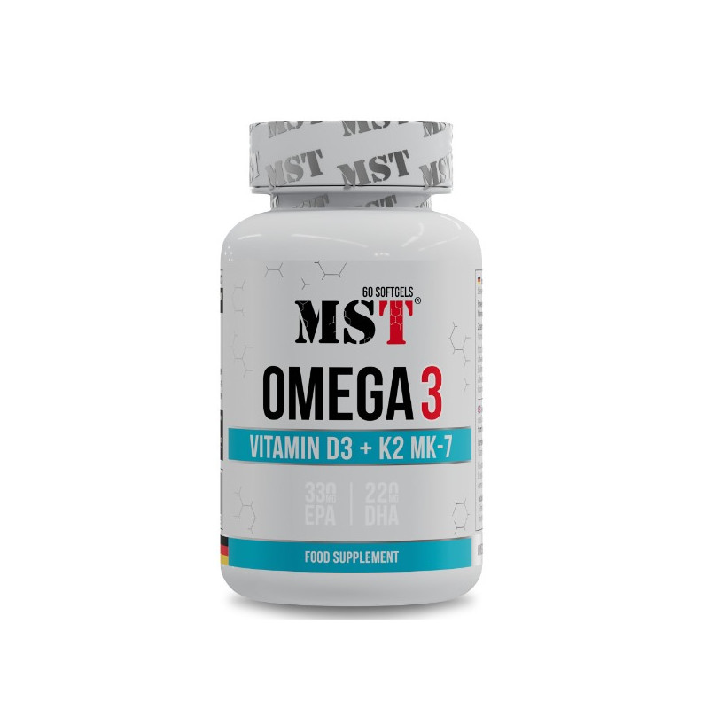 Omega 3 D3 K2 MK-7 від німецького виробника MST – комплексна біоактивна добавка, що складається з натурального риб'ячого жиру, з високим вмістом Омега 3, а також вітамінів D3, К2 та Е. водах північних морів. Воно використовується лише після ретельної попередньої перевірки на чистоту та нетоксичність. Тому вживання харчової добавки від компанії MST не має неприємних побічних ефектів, приносячи організму дорослої людини виключно користь.