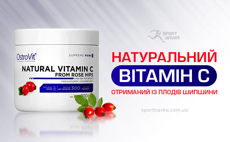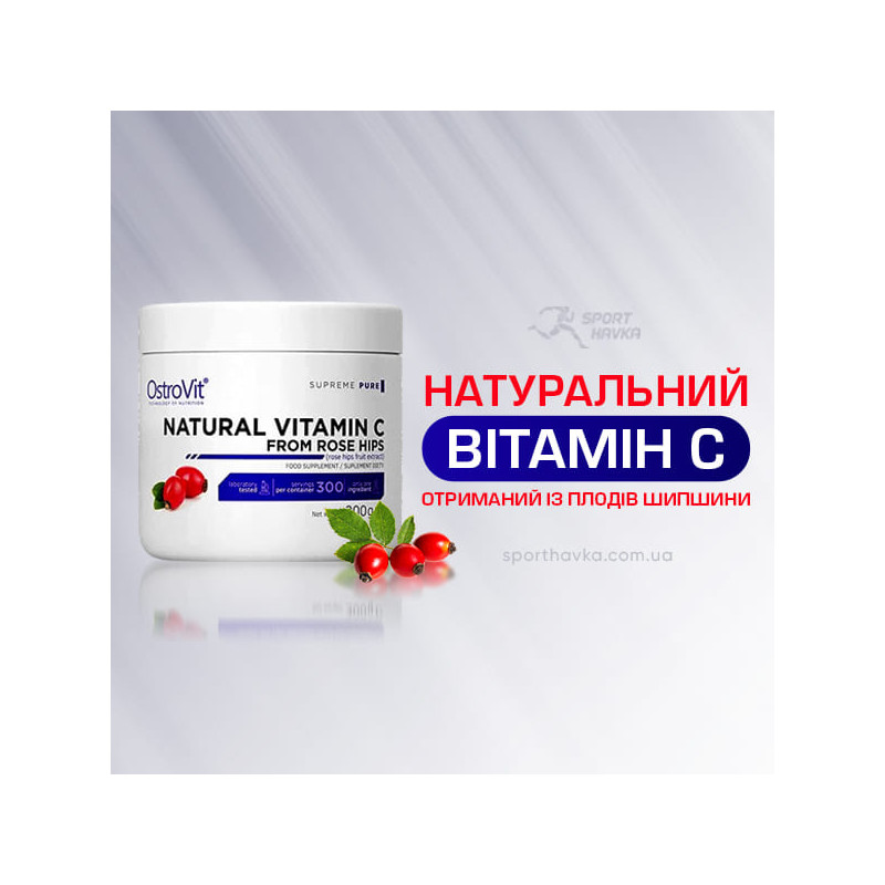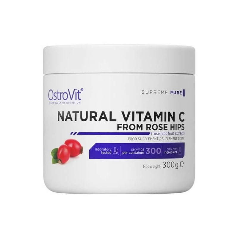Natural Vitamin C from Rose Hips від популярного спортивного бренду з Польщі Ostrovit – натуральний вітамін С, отриманий із плодів шипшини та адаптований до максимально біодоступної форми.