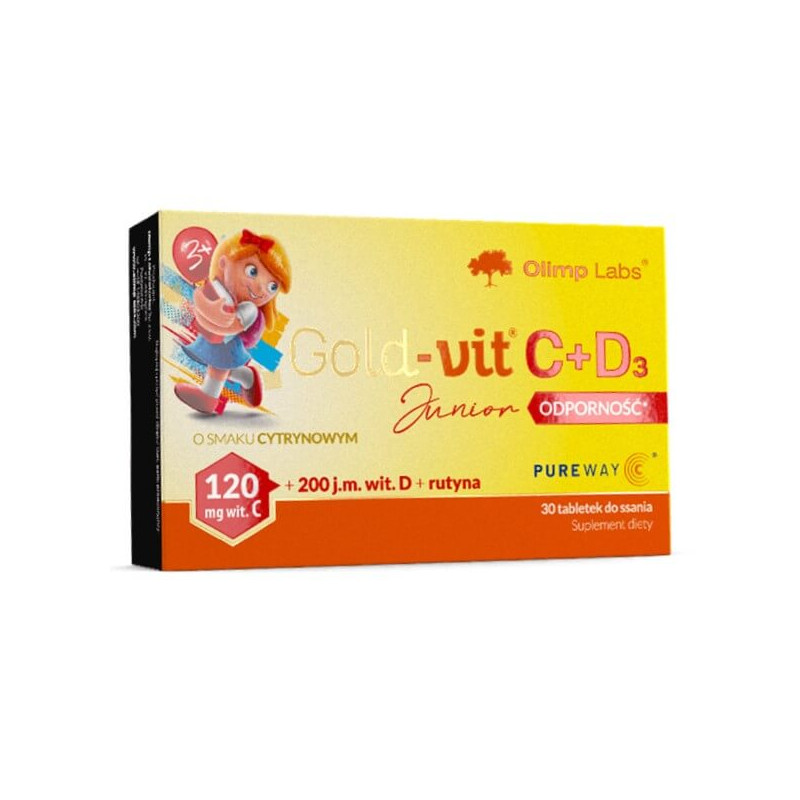 Gold-Vit C+D3 Junior – вітаміни для дітей від популярного польського виробника Olimp Nutrition. До складу комплексу входять вітаміни С і Д3 в адаптованій, добре засвоюваній формі ідеально збалансованої пропорції. Саме ці нутрієнти беруть безпосередню участь у своєчасному та якісному фізичному та розумовому розвитку дітей та підлітків.