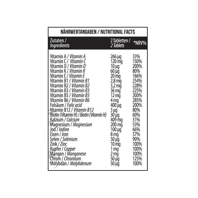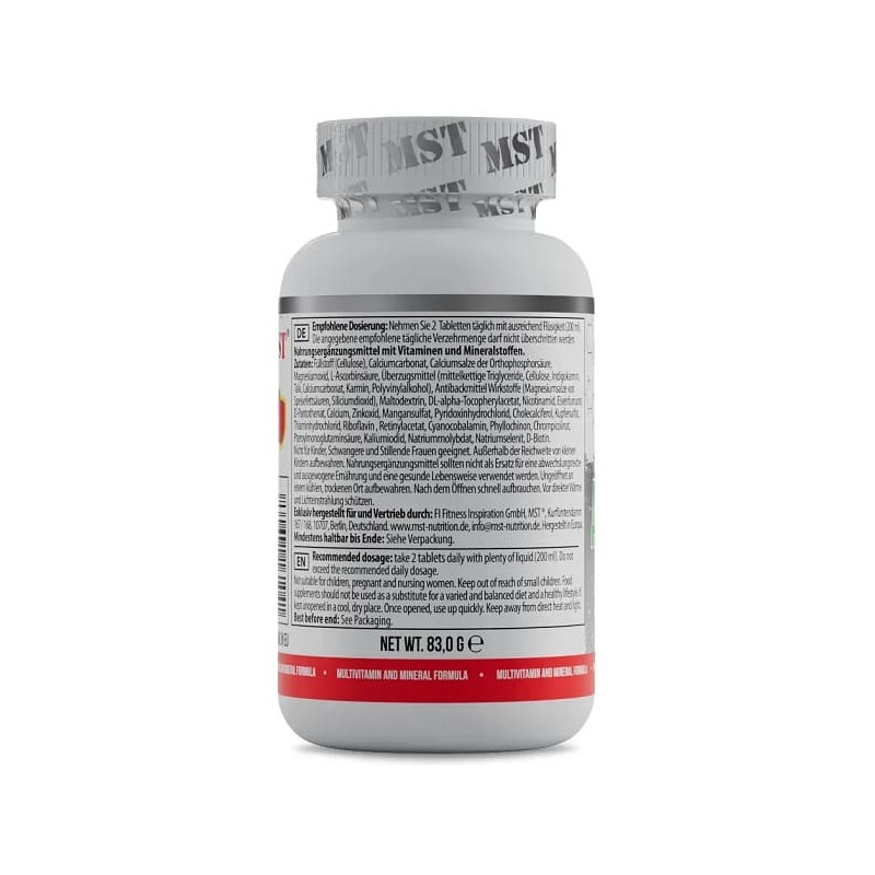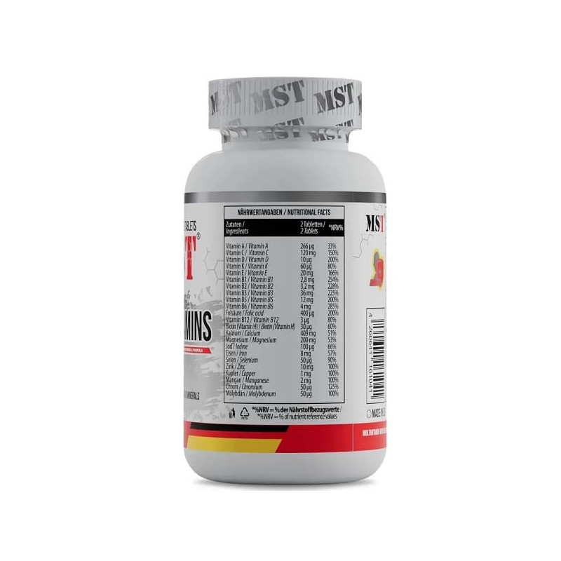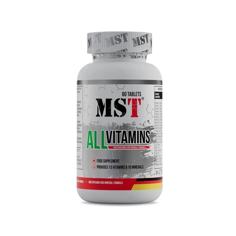 Біоактивна добавка All Vitamins від німецького виробника MST – універсальний, ідеально збалансований комплекс вітамінів, посилений важливими для організму мінералами. У кожній таблетці цього продукту міститься добова норма найважливіших мікроелементів.