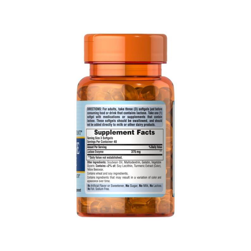 Lactase Enzyme від американського виробника спортивного харчування Puritan's Pride – біодобавка, основним компонентом якої є фермент лактаза. Його завдання полягає в обробці молочного цукру лактози – розщепленні його на простіші складові.