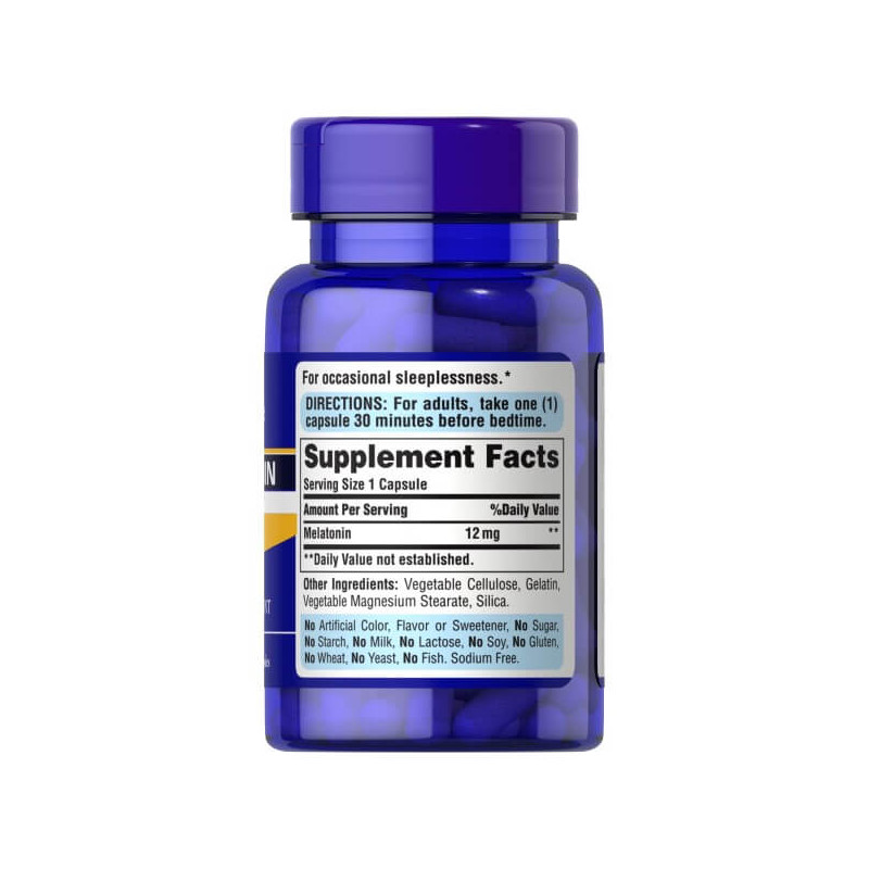 У кожній капсулі харчової добавки Melatonin 12 від Puritan's Pride міститься: