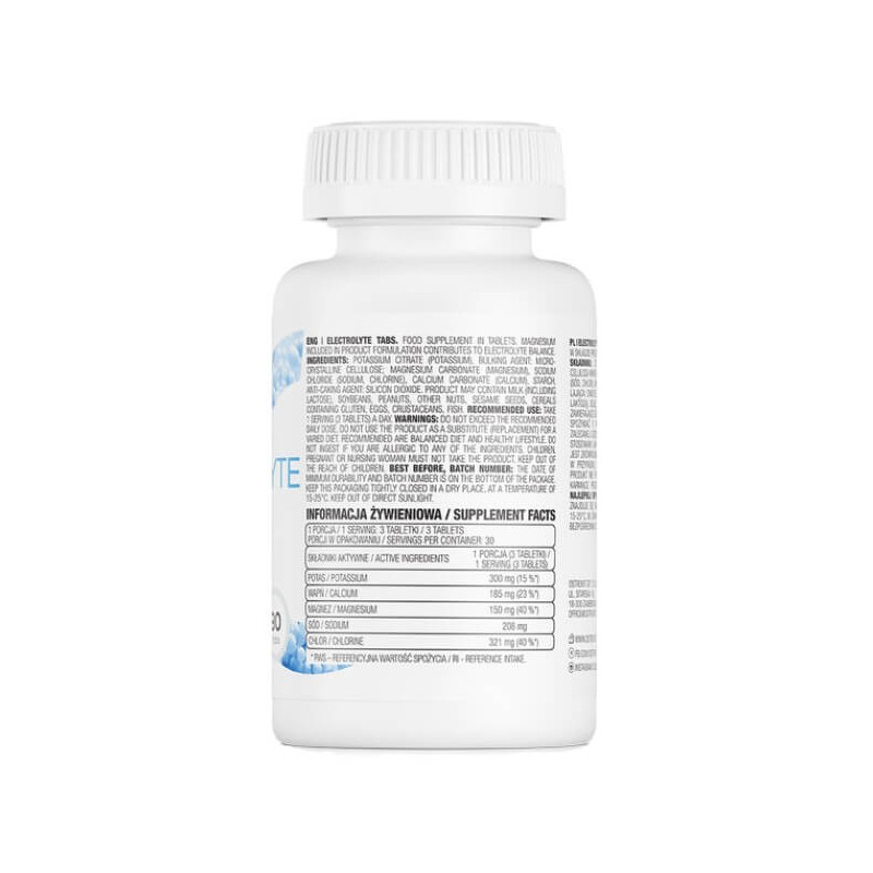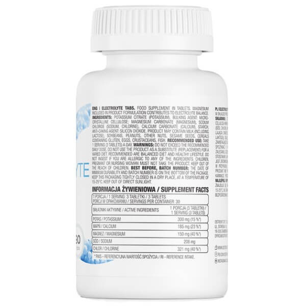 Electrolyte від польського виробника Ostrovit – збалансований комплекс, до складу якого входить п'ять найбільш значних мінералів-електролітів. Підтримувати оптимальний рівень цих речовин в організмі надзвичайно важливо – як для хорошого самопочуття сьогодні, так і для запобігання можливим проблемам зі здоров'ям у майбутньому. Дана біодобавка в таблетках допоможе вам легко зберігати необхідний електролітний баланс в будь-яких умовах, ситуаціях і обставинах.