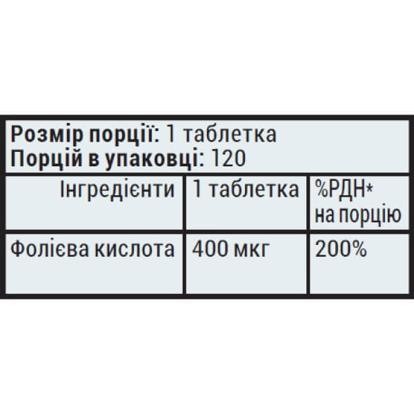 · 400 мкг вітаміну В9 (фолієвої кислоти);