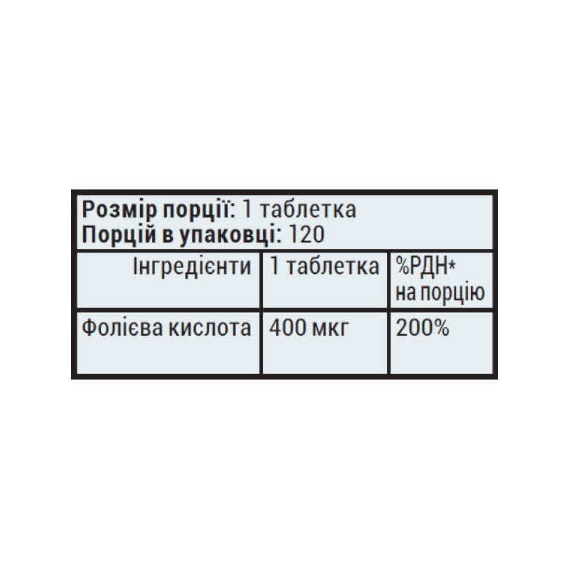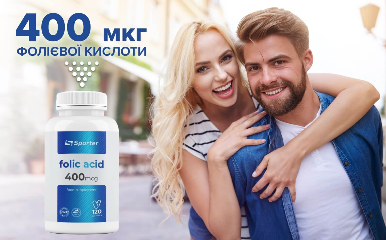 У кожній таблетці біоактивного препарату Folic Acid від Sporter міститься: